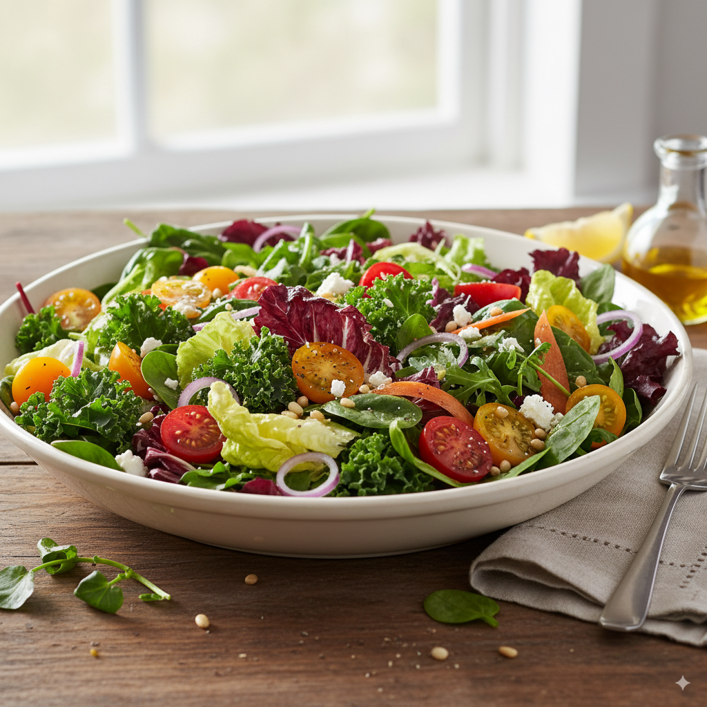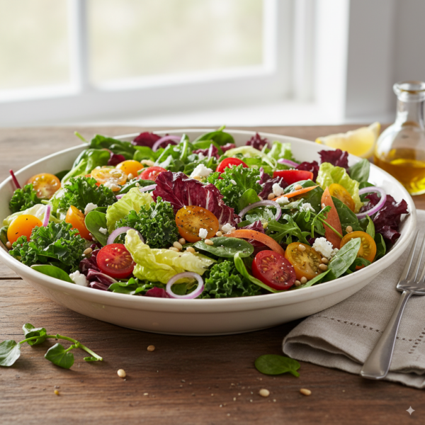 Mixed greens, pecans, cranberries, and homemade dressing.